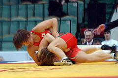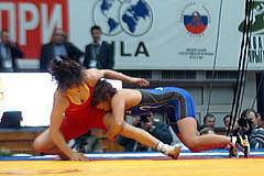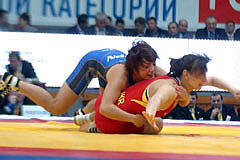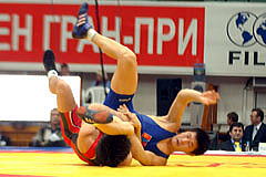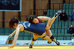 ヤリギン国際大会第2日は1月30日、ロシア・クラスノヤルスクで男子フリースタイル2階級、女子4階級が行われ、女子63kg級は山本聖子(スポーツビズ)が4試合に快勝して優勝。復帰後、8月のポーランド・オープンに続いて海外2連勝を達成。この階級では初の国際大会優勝をを飾った(右写真)。