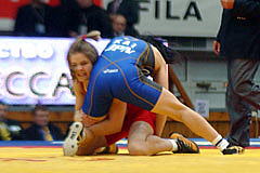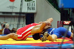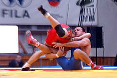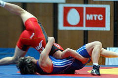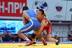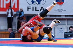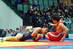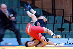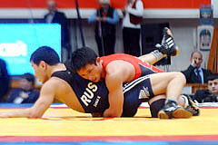 《試合経過》第1ピリオドの前半、両者がもつれてマット上を転がり、両者2点。このあとロシアがリフト技で投げて3点を加え、ガッツレンチで2点。ロシア陣営は両者2点が不服だったようでチャレンジしたが、認められず、田岡に1点が入ってスコアは3−7。ラスト15秒、田岡が相手のタックルに対してがぶり返しを決めたたかに見えたが、相手に3点が入り、4−10のテクニカルフォール負け。第2ピリオドは相手のタックルを田岡が返したが、両者2点。このあと田岡がニアフォールの体勢へ追い込み4−2へ。1分40秒、相手のタックルに田岡が体をあずけ、6−2としてこのピリオドを取った。