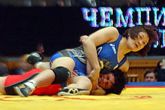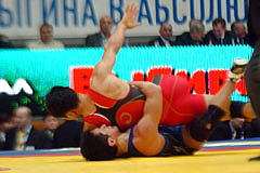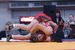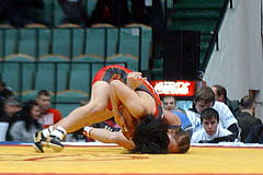 【敗復戦2P】首投げからフォールを狙う山名。押さえ切れなかったが4−0へ。 |