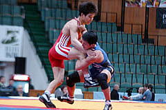 《試合経過》第1ピリオドの30秒、稲葉がタックルで1点を獲得。ここでネルソンでニアフォールを執ように狙ったが決まらず、返されて2失点。すぐにバックを取って2−2としたが、ビッグポイントの差によってこのピリオドを落とした。第2ピリオドは中盤にタックルで1点を失い、終了間際にもタックルから場外に押し出され、0−2とされて敗れた。