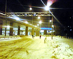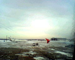 雪の車道をトボトボと歩き、7分でDターミナルの端へ。15分で正面玄関へ。最初に聞いたインフォメーションのおばさんの「15分」というのは、歩いて行った時の時間のことだったのかな、と思った。考えてみると、「ターミナルD?」と聞いたのであって、「シャトルバス・トゥ・ターミナルD?」とは聞いていなかったのです。