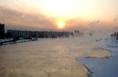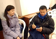さて7時45分、まだ明るくもなっていない極寒の中、バスで会場まで移動。やたら寒さを強調していますが、建物の中とか車の中にいる限りは、どうってことないんですよね。でも、バスの窓から外を見ると、この寒さの中を歩いている人も少なくありません。前日の空港でも、吹雪の中、作業をしている人もいました。もちろん、シベリアに捕虜として連行された日本人もいるわけで、どうやって生き延びたのでしょうか。