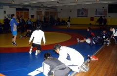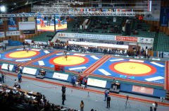 試合会場は1997年の男子フリースタイルの世界選手権ででも使われたアリーナ。当時の世界選手権は今ほど出場選手が多くなかったので、3面マットでできましたが、今世界選手権をやるには、ちょっと狭いでしょうね。でもこの大会、55kg級などは36選手出場で、世界選手権並みの規模の大会なんですよ。3面マットで大丈夫かな、という気がしてきました。