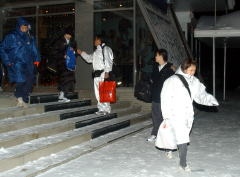 飛行機からはバスで空港ターミナルへ。大空港にあるようなブリッジなどないのです。バスまでのわずかな時間でも寒さが身にしみる。毛糸の帽子を取りだしたくなったが、それよりも先にバスに乗り込む。空港では大会役員の人が迎えてくれたが、その中の年配の一人が、こちらが日本人だと分かると、「タカダ」と言ってきた。たぶん高田裕司専務理事のことだろう。