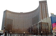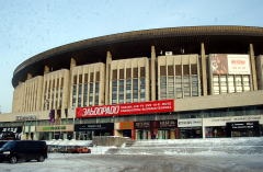 その後、ホテルからタクシーで試合会場へ向かおうと思い、正面玄関に出たが、タクシーはなし。これだけのホテルなら、正面にタクシーがつけてあってもおかしくないが…。ホテルの敷地内を100メートルくらい歩いて大通りに出ると、そこにタクシーが停まっていて、例によって客引きしてくる。今回は、この客引きに乗るしかない。試合会場が予定されている「オリンピック・スポーツ・センター」と言い、その写真を示すと、「700ルーブル(約2200円)」との答え。それを500ルーブル(約1900円)まで下げさせ、10分ちょっとで到着。