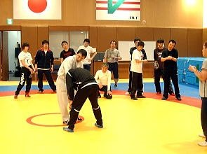 「けがをしないことと、楽しくやらせることに力を入れています。強くなってオリンピックを目指す選手もいれば、体が弱いので強くしたいと通う選手もいる。みんな同じように強さだけを求めさせることはしません」と言う。指導者講習会に参加したのは、「子供達の指導と現在のルールをしっかり研究したかったから」。正しい指導は、正しい知識から生まれる。この姿勢からしても、石井さんのキッズ指導にかける情熱がうかがえる(右写真=指導者講習会での石井さん=左端)。