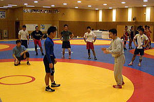 グレコローマン・チームを指導する伊藤広道強化副委員長(自衛隊) |