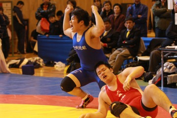 兄・康稀は昨年、高校2年生にして三冠王に輝き、今年は2年連続の三冠王を目指す。山本康の試合はレスリングの醍醐味がギュッと詰まっていて面白い。重量級にありがちな、四つに組んで様子を見ることは一切しない。開始早々、相手のを手をとって間合いを詰めると、両足タックルでもぐりこむ。相手は力任せにがぶってつぶそうとするが、「足から崩すのが得意」と、そこからが山本康の見せ所。自慢の走力と背筋力を使ってテークダウンへ持ち込む。