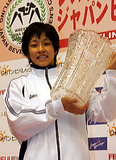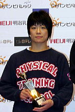 正田絢子(しょうだ・あやこ)=ジャパンビバレッジ、2年連続4度目 1981年11月3日、大阪府生まれ。23歳。京都・網野高卒。吹田市民教室でレスリングを始め、98年JOC杯ジュニア58kg級で優勝するとともに、16歳で全日本選手権62kg級で優勝の殊勲を挙げた。99年に世界選手権に初出場初優勝。00年はアジア選手権と世界ジュニア選手権で優勝し、01年もアジア選手権で優勝した。その後、負傷で低迷していたが03年にアジア選手権63kg級で優勝。05年に59kg級へ落としワールドカップで優勝し、ユニバーシアードでも勝った。しかし全日本選手権は2位に終わった。163cm。 |