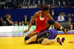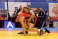| W杯でつまずいたものの、6年連続世界一の吉田沙保里(日本) | 吉田の連勝記録を止めたバンデュセン(米国)。 | ロシアからカザフスタンに移り、2度目の五輪出場のスミルノバ。 | 07年世界選手権で吉田を追い詰めたレンテリア(コロンビア) |